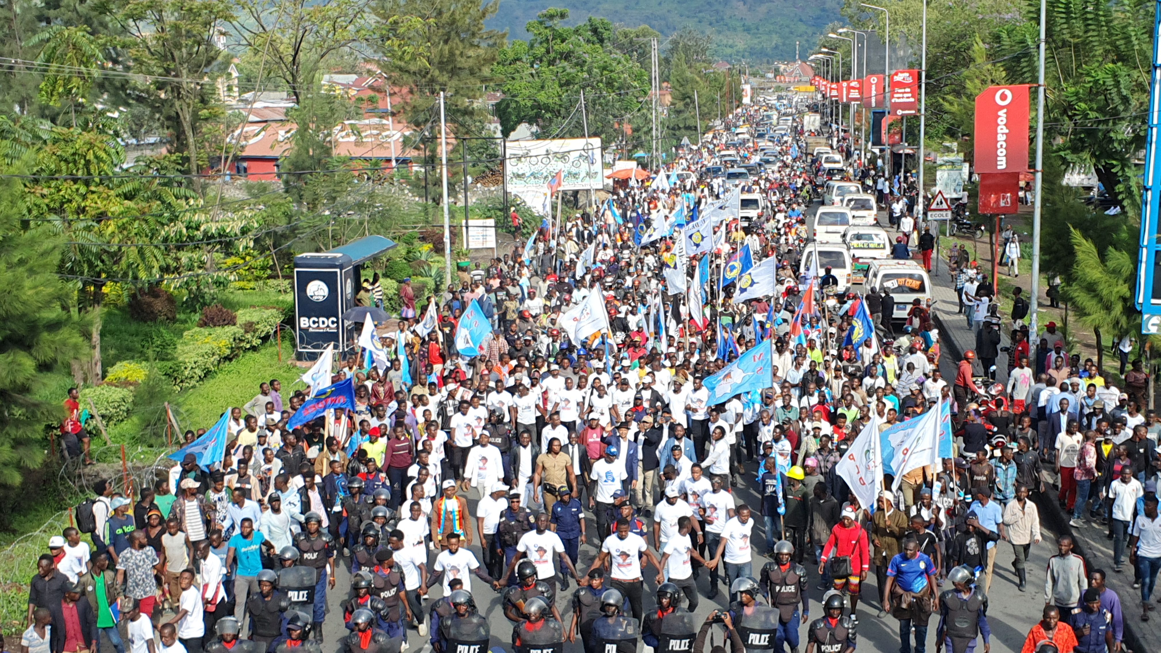 L’opposant congolais a choisi la manière pour démontrer sa popularité loin son Katanga natal. Sous un soleil qui a mis du temps à prendre l’ascendant sur une pluie vaincue par ses militants, l’ancien gouverneur a marché, à pied, en parade, de l’aéroport au lieu du meeting.